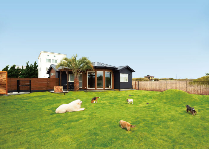 愛犬が天然芝ドッグランではしゃぐ姿を見つつ海辺のコテージで潮騒を聞きながら過ごす。まるで映画の世界に跳びこんだような時間をご提供いたします。