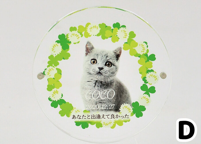 ご希望の柄をお選びいただき、お写真・ペット名・ご命日・メッセージ(20文字程度)を印刷する事ができます。